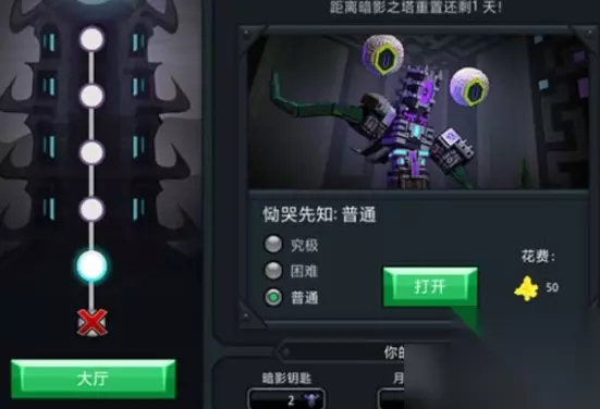 暗影宝石箱是获取暗影主题装备的重要途径,最有效的方法是通过挑战暗影塔获得。玩家可通过公会内的安隐传送门进入暗影塔。成功击败最终BOSS泰坦后,地图上将出现暗影塔宝箱,但需要使用对应难度的钥匙才能开启。其中暗影难度最为基础,仅需普通钥匙即可解锁。