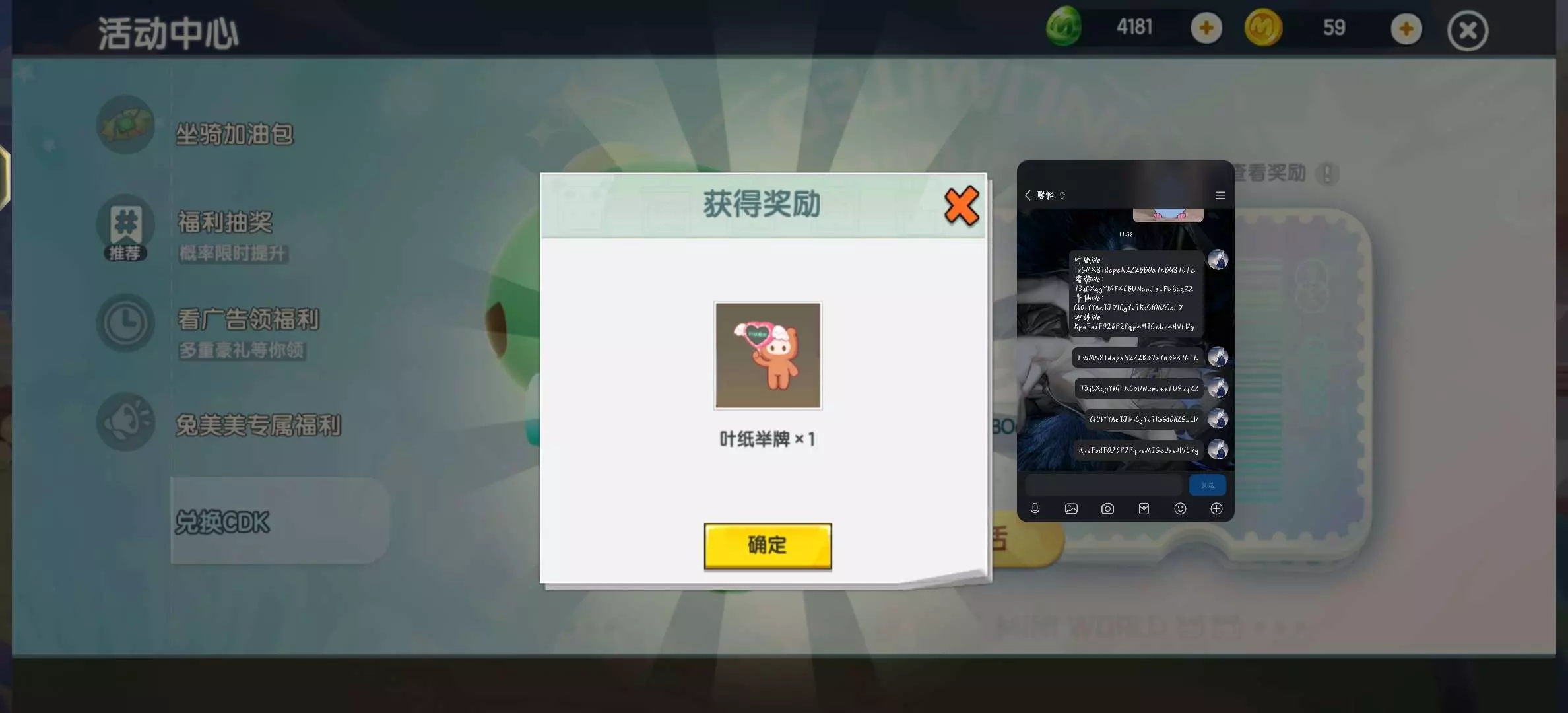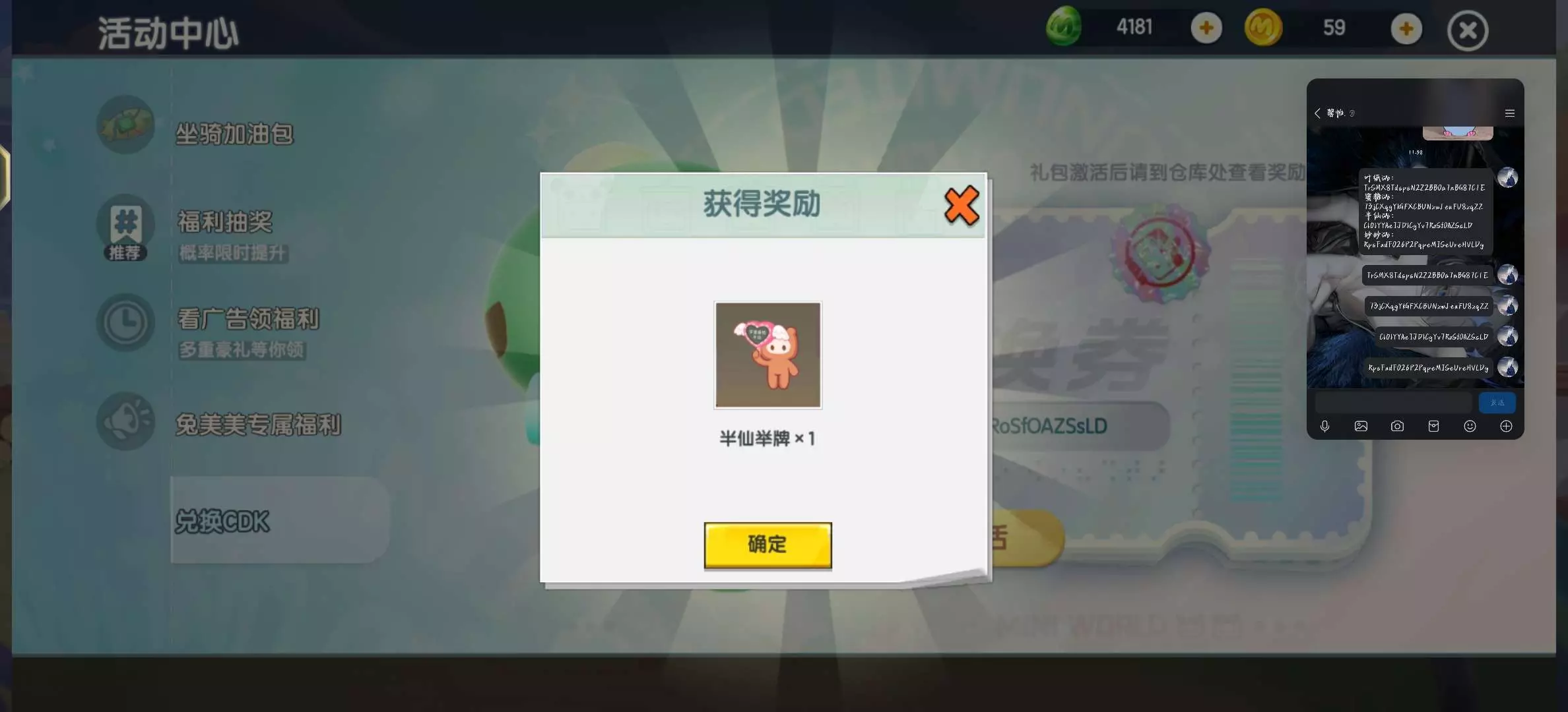 大家快去领吧,我会将兑换码发在评论区,如果看不到请跟我说,我建议大家不要看着打出来,尽量复制好.