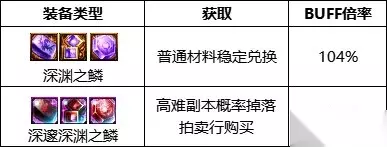 4.BUFF换装 深渊之鳞为魔界哈林地区代号:希望副本产出的装备,也可通过110版本材料霜色水晶兑换 深邃深渊之鳞为110版本高级地下城或者英豪模式地下城掉落的可交易新装备