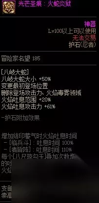 【护石提升率】 伤害提升率21% 【护石解析】 删除蛇爆,蛇毒,仅留吐息,整体技能结算快了很多,蛇增加大小,改变身位,增加范围; 忍者的75/80技能占比和地位比多数职业要高,不仅护石必选而且收益也相对更大。