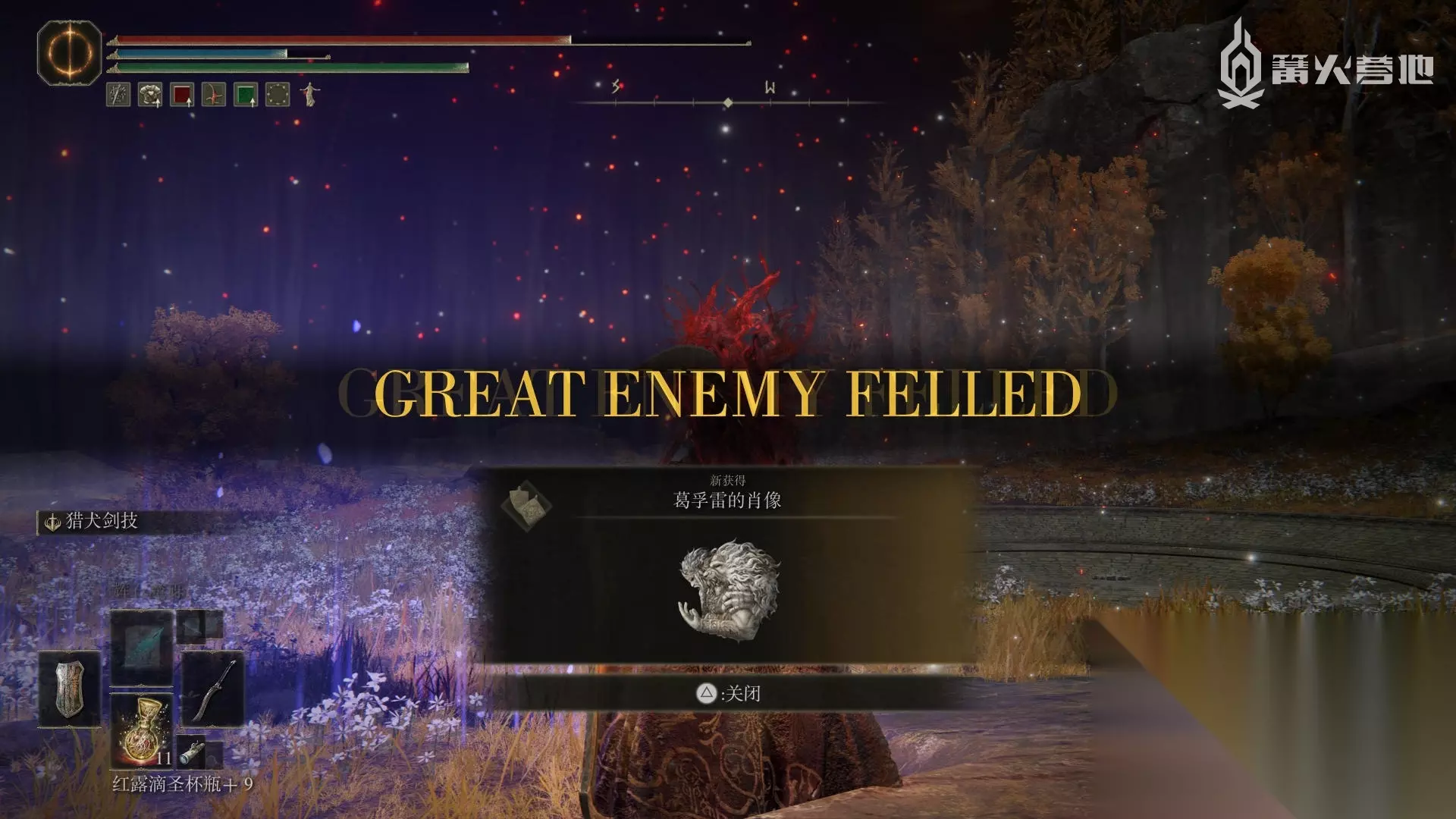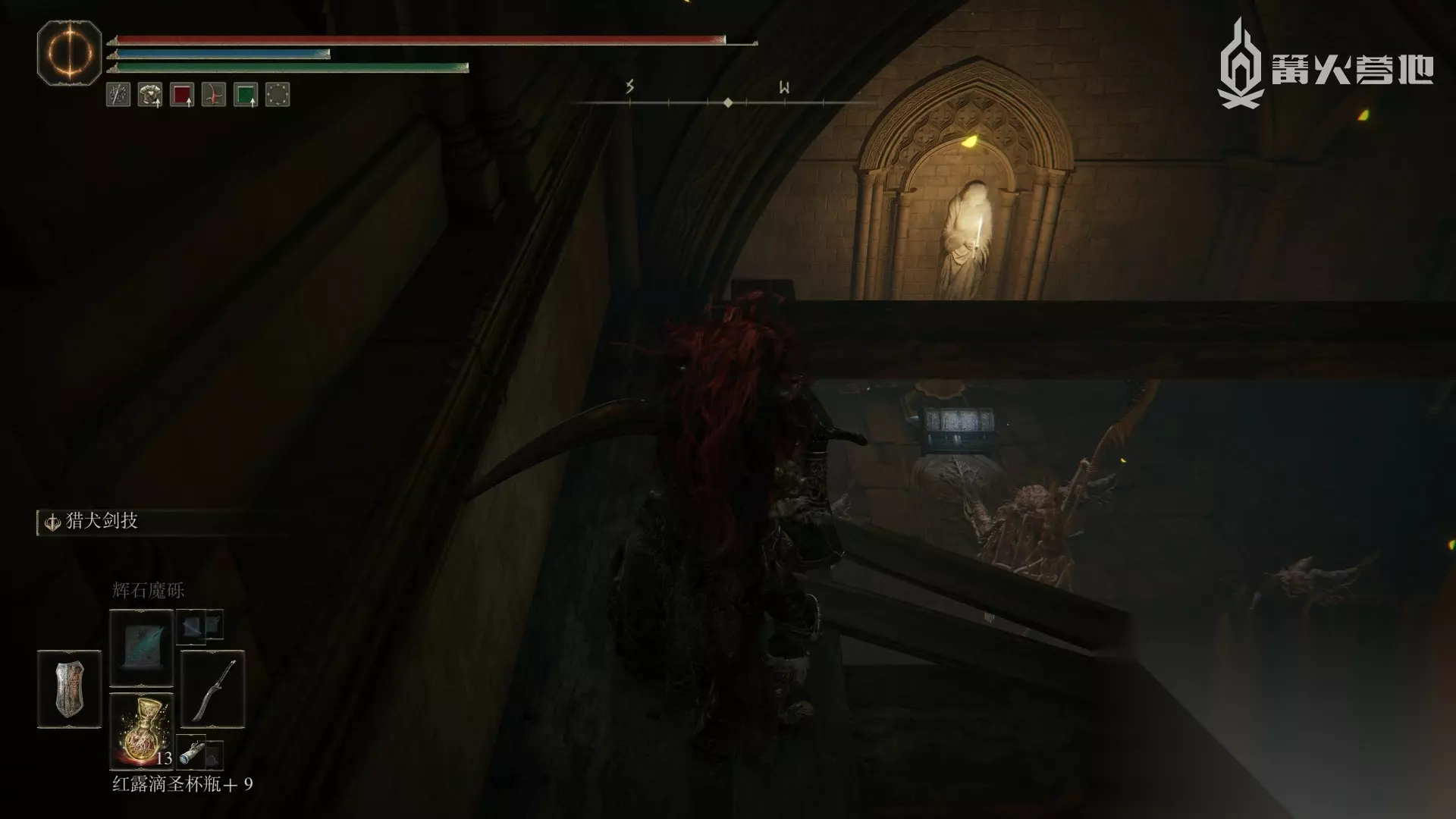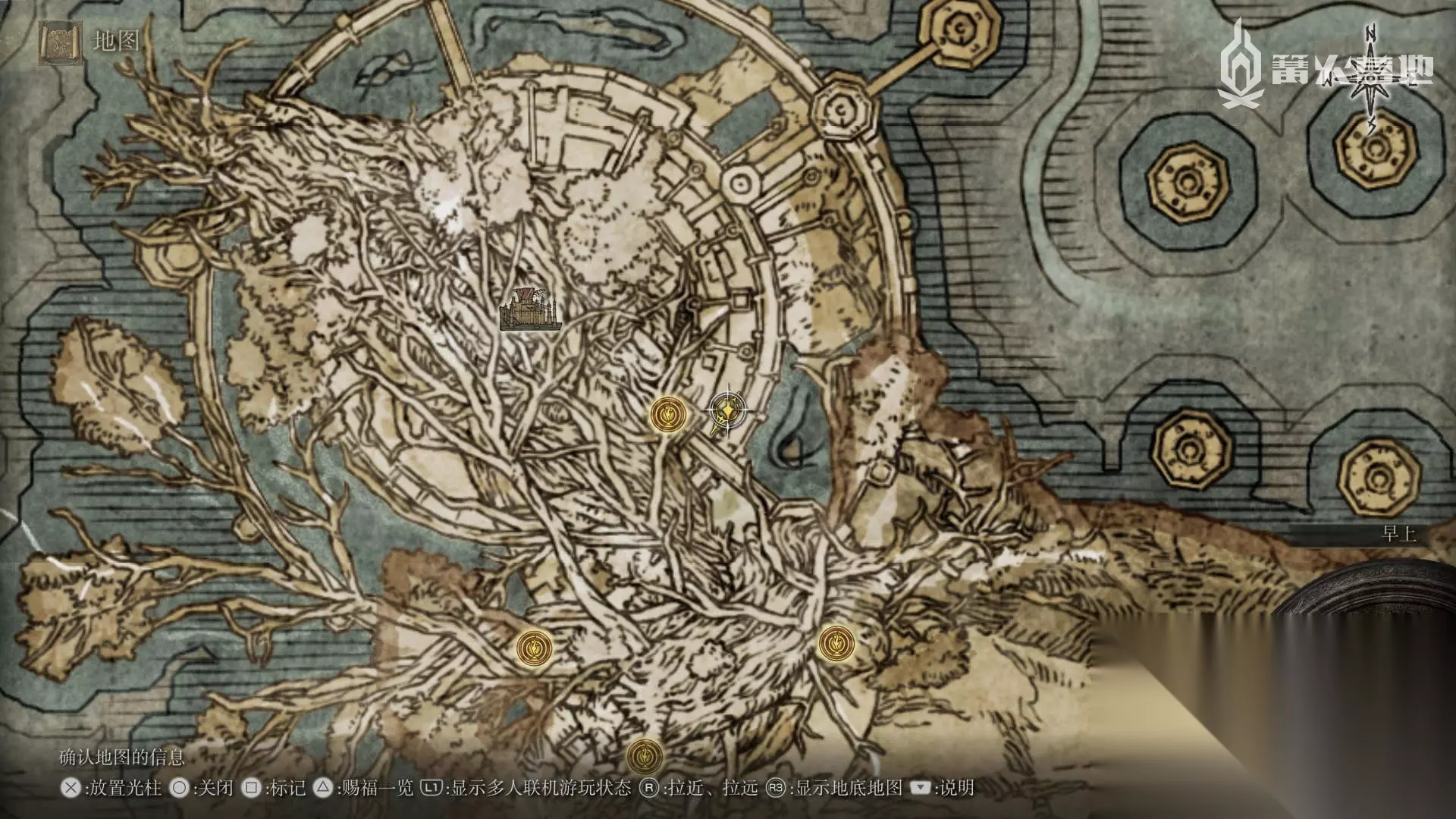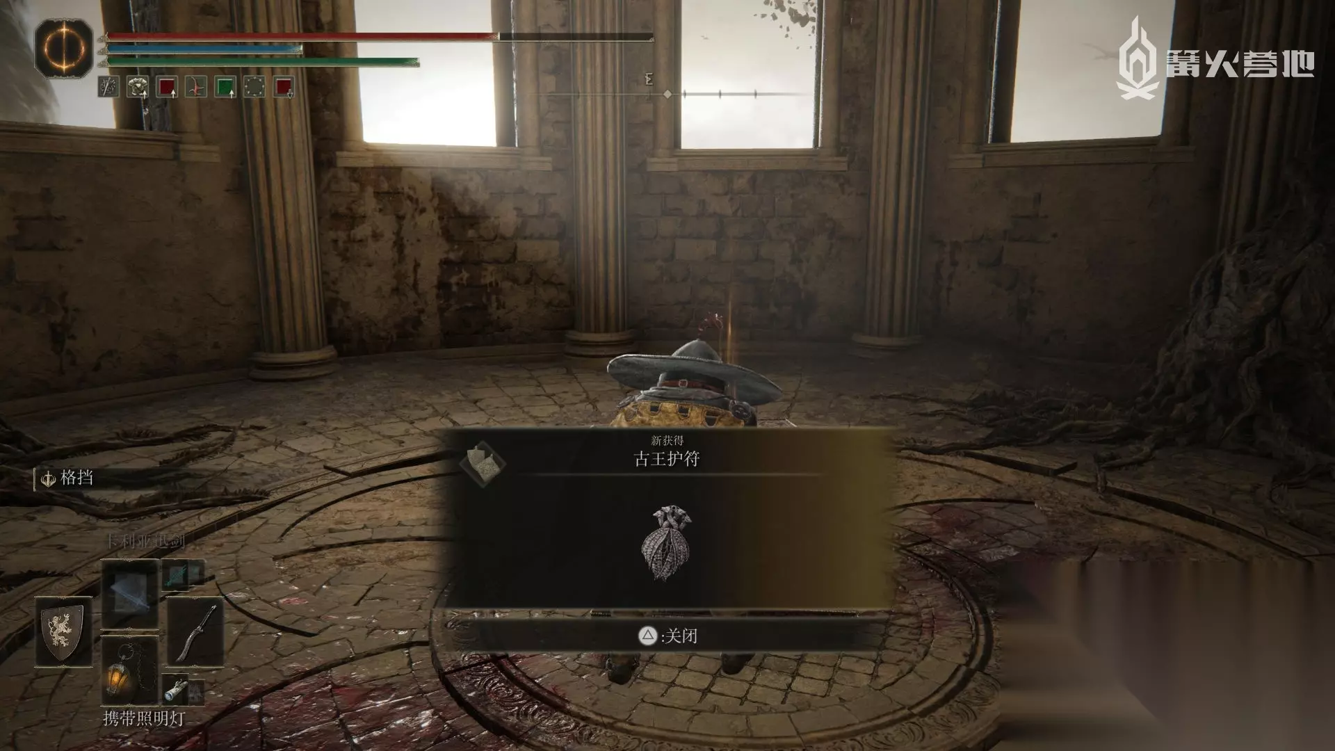 古王护符 在逐渐崩毁的法姆·亚兹拉的赐福「大桥侧边」出发,不去有大树守卫和 Boss「野兽祭司」的位置,回头往下走,途径有很多尸体的区域,在尽头的厅堂开启宝箱可以获得此护符。