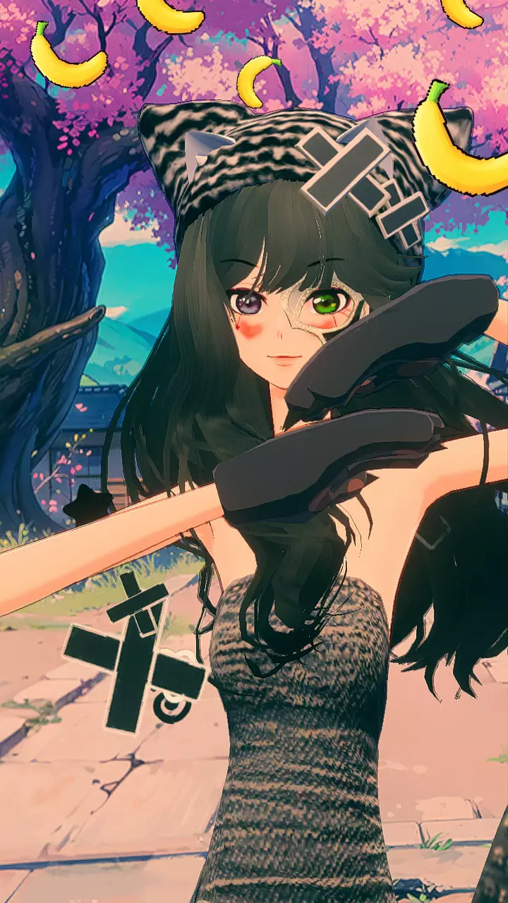 发现了一个可以接香蕉的一棵樱花树,好开心跳个舞