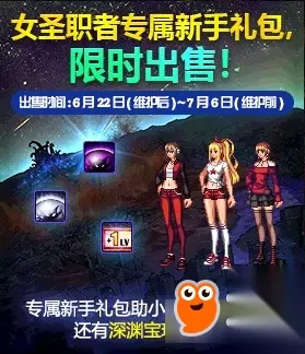 国服第十套稀有装扮将会在6月22日更新之后上架,新的天空套同样分为白色和金色,凑齐一套有光翼特效。同时商城内上架钻石合成器礼包和黄金装扮合成器礼包。 2、女圣职者专属新手礼包出售