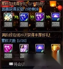 每天在线180分钟还可以获得累积奖励,累积20天在线180分钟可以获得1个史诗武器袖珍罐,开启之后可以随机获得1个指定类型的80-85级史诗武器。 2、周年庆期间每日登录奖励 该活动并不是在游戏中直接领,而是每日登录之后可以至官 网领。 每日登录奖励第一弹 (1)LV80以下武器和防具可用的史诗装备跨界石和LV85史诗装备碎片99个二选一 (2)九周年宠物灯笼萌娃1个 (3)9个复活币、90个闪亮的雷米援助 每日登录奖励第二弹 (1)黄金装备调整箱1个,限定武器和防具 (2)1-85级可用的升级券5张 每日登录奖励第三弹 (1)从+9、+10、+11、+12、+13的装备强化券中随机获得1个 (2)如果获得的是+9的强化券,可以额外获得1个+13的装备强化券 每日登录奖励第四弹 (1)+9~10的强力黄金装备增幅书 (2)账号金库升级工具,提升账号金库等级至下一阶段 官 网抽奖 上述的活动每一阶段都需要领了上一阶段的奖励之后才可领,同时领了全部四个阶段奖励的玩家可以在官 网参与欢乐代币券抽奖,可以随机获得7000、8000、9999、99999欢乐代币券。 如转载涉及版权等问题,请作者与我司联系,我司将在第一时间删除或支付稿酬。 DNF2020活动 欲望之塔
