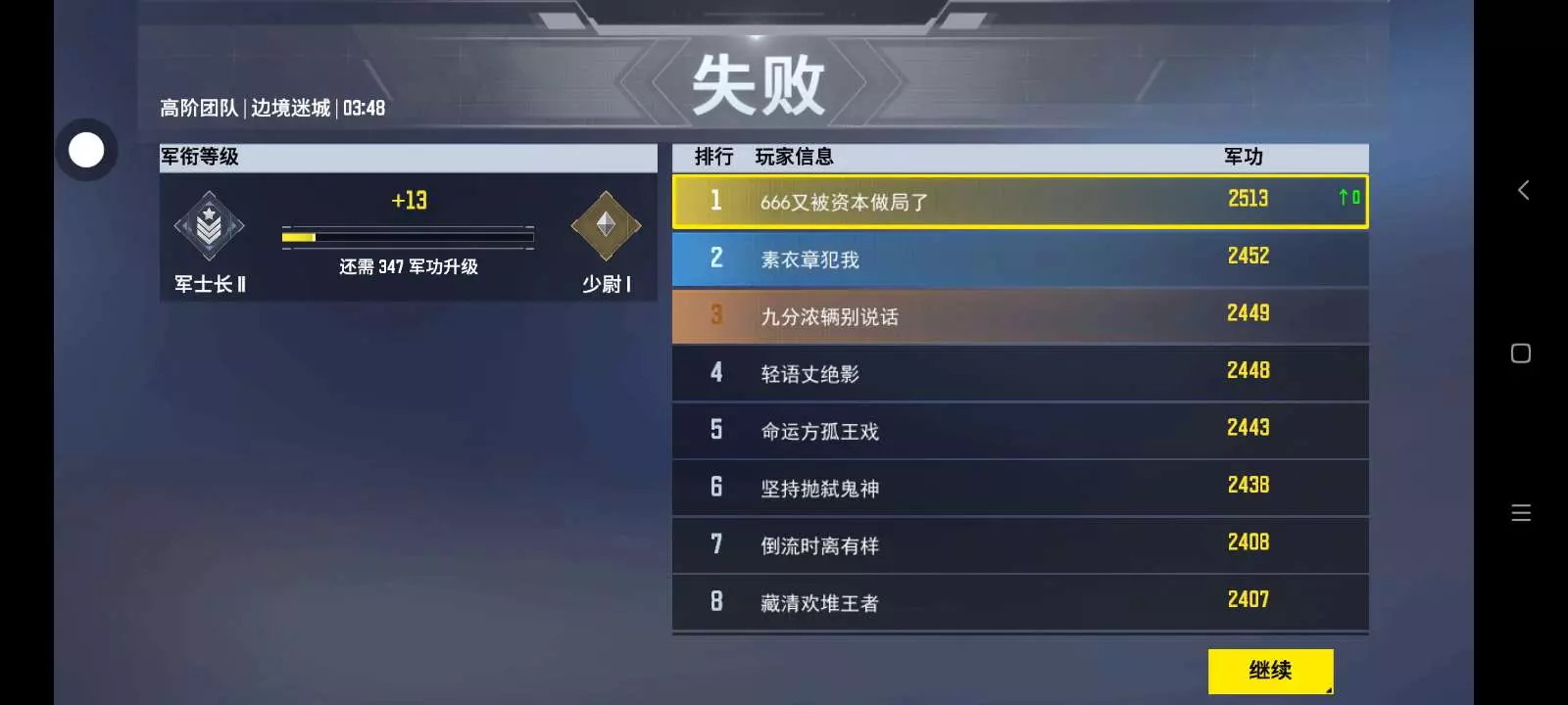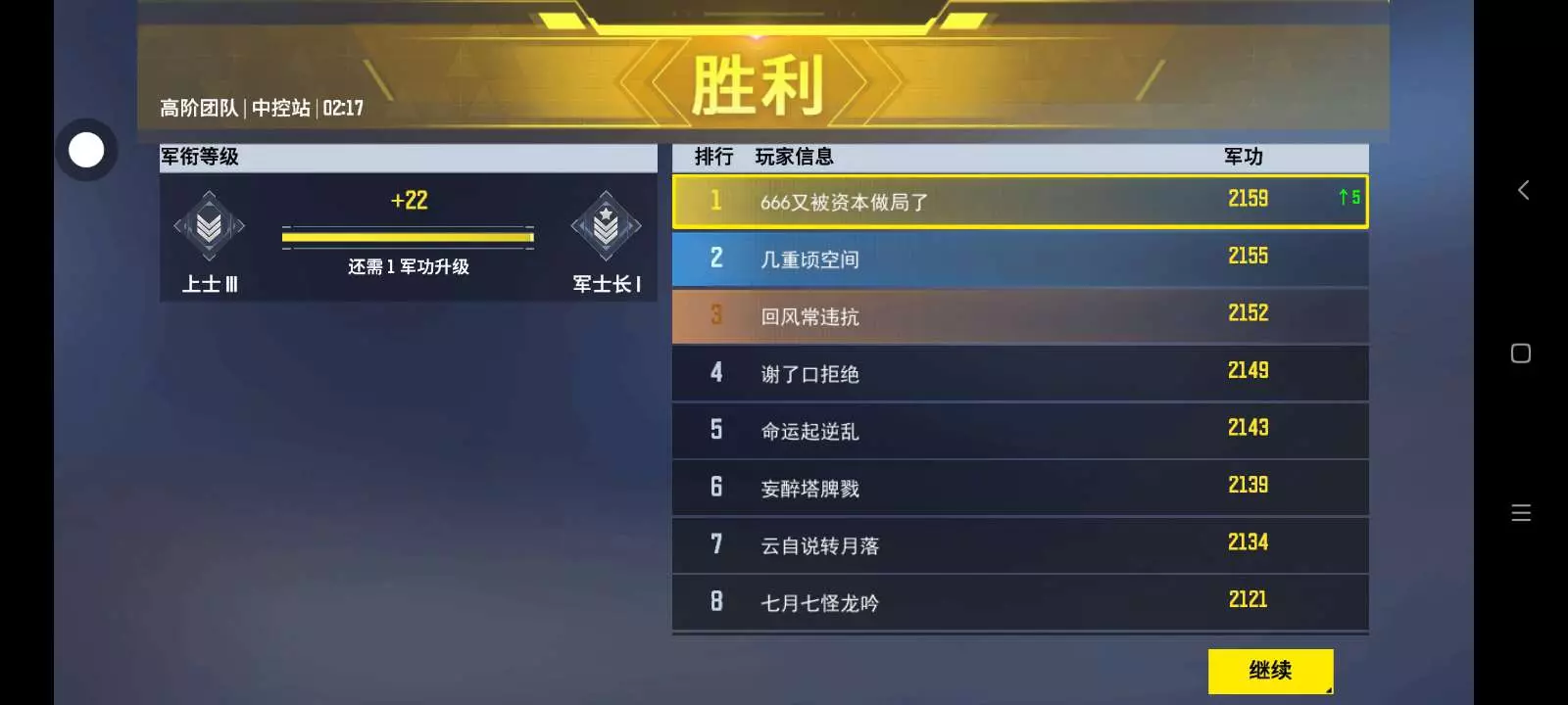 终于凑够三次军功第一名了