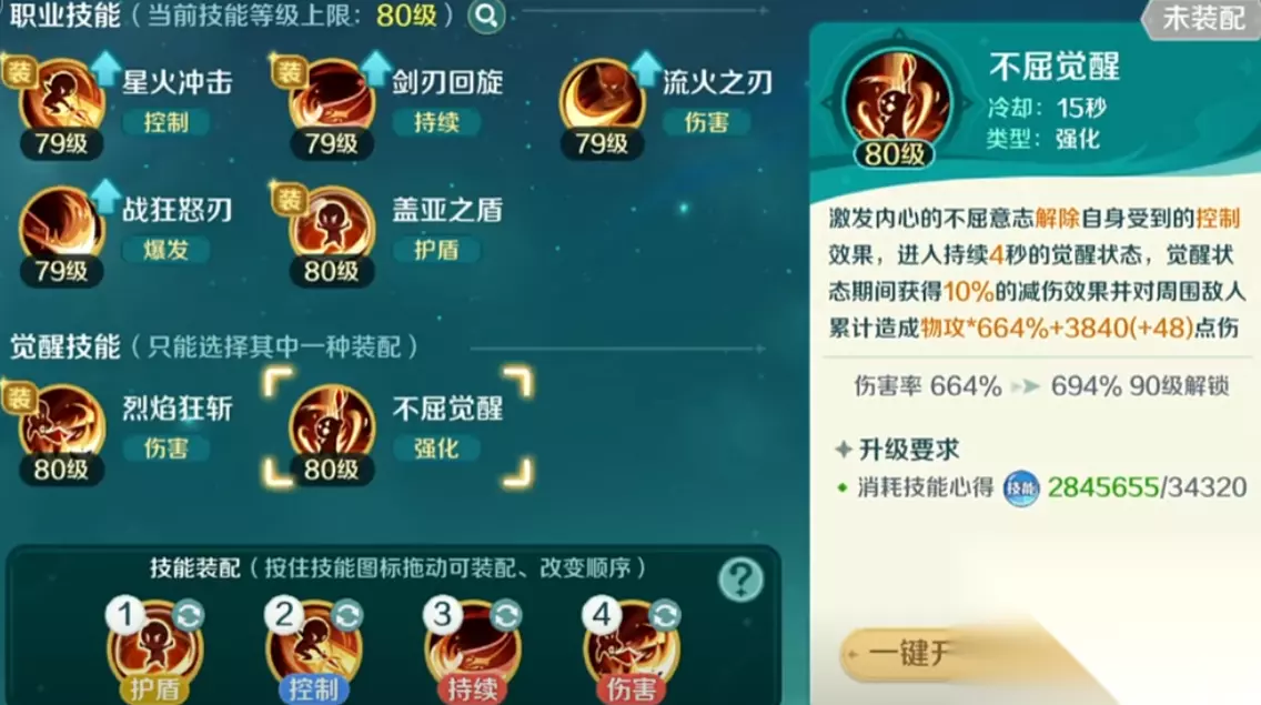 在后期铭文系统中,元素类加成必须点亮。同时要注意技能组合与位移机制的协调性。若走PVE路线,“烈焰狂战”技能无需投入过多点数,可直接替换为“不想学习”这一天赋。重点加点“信念守护”与吸血相关技能。“不想学习”激活后可触发被动,有效解除敌方施加的控制效果,并进入寺庙觉醒状态。在此状态下,角色可获得10%减伤,显著提升战场存活率。由此可见,防御数值的重要性反而不如该技能带来的综合收益。