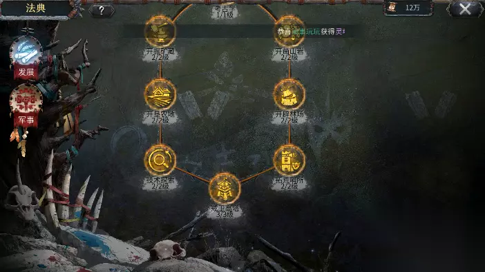 法典 法典有两个大项发展和军事,有多的资源就直接升级就好两边建议都要一起升不要只升一项,不然后面容易卡节奏