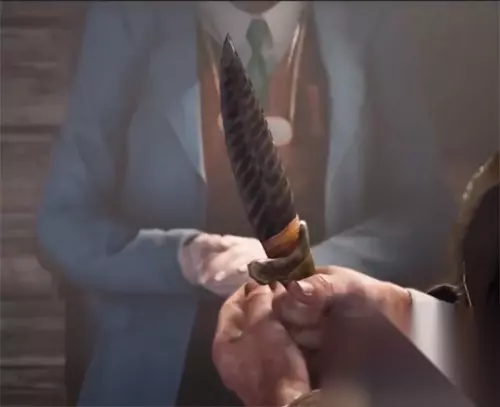 3、当大家成功收集到30份的恐龙化石后,可以在仓库中重新找到老妇人,大家找到老妇人后,会触发一段剧情,当剧情结束后,大家就可以获取老妇人的宝藏——一把用恐龙骨头制作的小刀