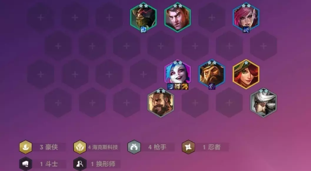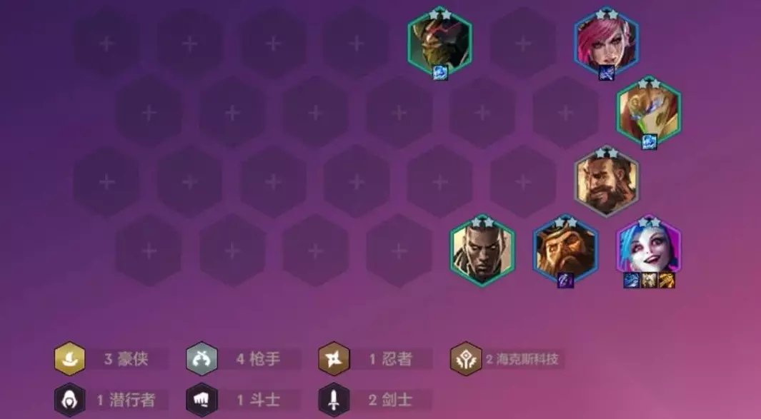 阵容解析 原版海克斯羁绊封禁装备简直是神一般的效果。变为范围减速之后当挂件都嫌多余,不过最近几乎每家必出的女妖之爪让后排都聚集了起来。如果前排不抱团,海克斯必中后排C位,前排扎堆必然导致假赛,团控技能丢偏。 豪侠羁绊基本都被用来追3费3星了,可能是经过福星、龙族的思维惯性,豪侠英雄每张卡单拎出来都不弱,比较类似太空海盗,都上场组合枪手羁绊速八全员追二,战斗力非常可观。 装备推荐 暴走萝莉-金克斯(同名) 巨人杀手(暴风大剑+反曲之弓) 卢安娜的飓风(负极斗篷+反曲之弓) 守护天使(暴风大剑+锁子甲) 核心金克斯装备,阵容无机器人必备分裂箭;伤害装巨杀,有4-2合适装备也可以替代;最后一件续航装优选复活甲,对面有龙牙必须要带正义,都没有就用科技枪补充。 皮城执法官-蔚(同名) 冰霜之心(锁子甲+女神之泪) 离子火花(无用大棒+负极斗篷) 能追三就是副C,追不到也是最佳工具人。离子非常重要,帮助金克斯打出高额混伤,还能带到对面后排增加电疗服务。法装给卢锡安打工,后期来女枪直接换上,慎和中期过渡用的派克都可以带上冰心,非常好用。后排最好带一件女妖,虽然多余卡用来防勾,让金克斯和女枪有一个盾才能发挥得更稳定。 运营思路 前期运营 开局抢 开局最好拿攻速,对局选择最多,野怪也爆攻速可以转吃鸡能力比较强的阵容。大剑也可以,巨杀复活甲之类装备需求量也不少。都没有就拿眼泪,正义,冰心也都用得到。