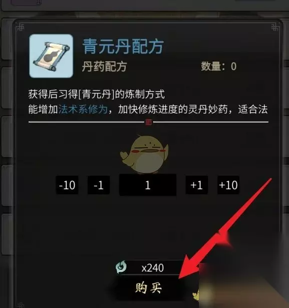 4、最后我们点击购买,消耗货币即可购买获得青元丹的配方;