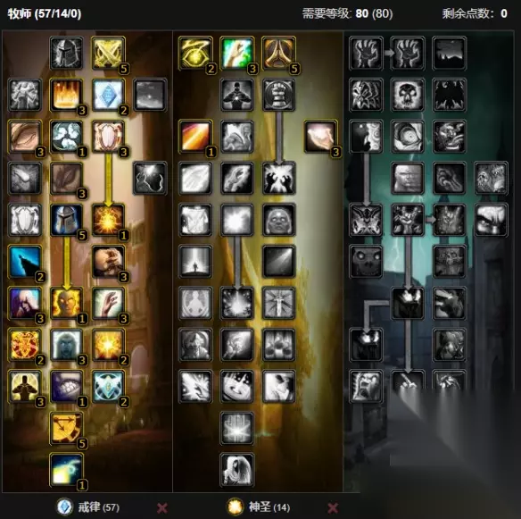 2、由于戒律牧对法伤的要求极高,并且涉及了套盾权的问题,所以这套装备还是非常好用的。 3、装备采用了2T7没有采用4T7,因为戒律牧基本不读强效治疗,头和脚采用暗牧的2t7来增加暴击,去满足更多需要。 4、天赋:
