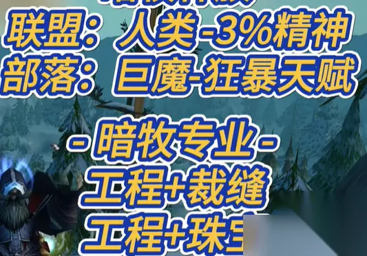 介绍: 1、如果要玩暗牧,玩家联盟选择人类,部落玩家则要选择巨魔,专业选择工程+裁缝或是工程+珠宝。