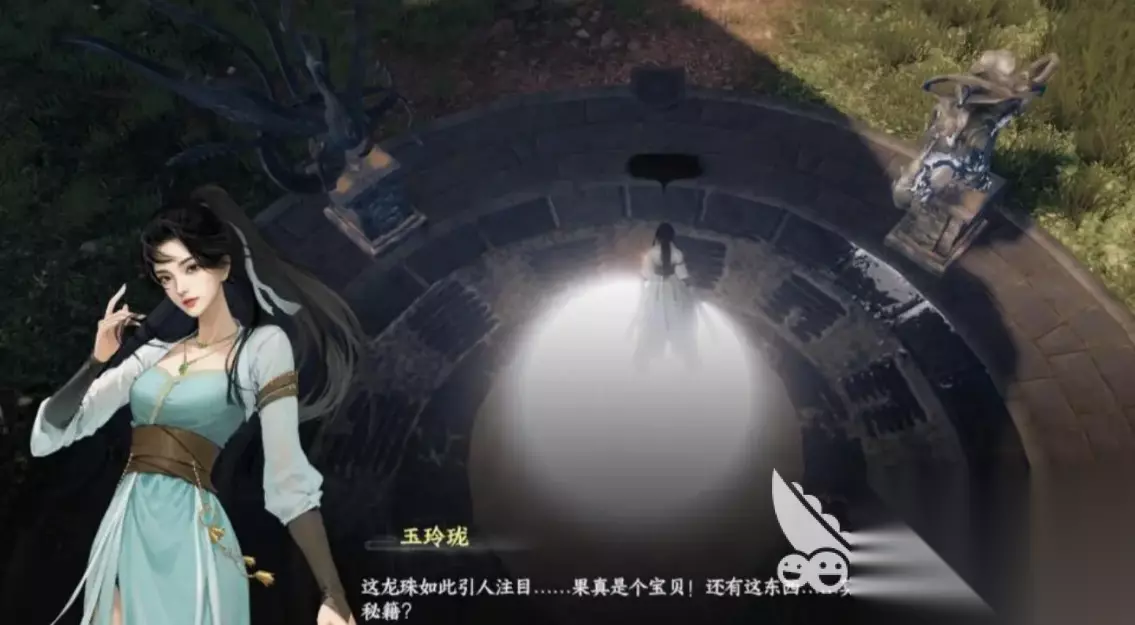 根据地形图前往登天流(920.1288),开启石门并击败陈承嗣,获得日记本。通过日记线索,完成龙脉秘藏的解密流程。在房间书架可找到《若水剑法·半天河》,金光位置有神秘纸条,标注的坐标(918.1302)对应第二颗龙珠。