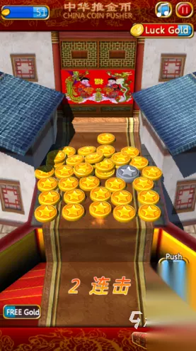 以大家熟悉的街机推金币机为灵感设计的手机游戏,画面非常萌趣可爱,卡通感十足。在这个游戏里玩家可以收集各种可爱的小动物角色,每次金币哗啦啦落下的声音,还有绚丽多彩的游戏场景,都能让玩家玩得很开心。它以三国为背景,让推金币也玩出了新花样,简单又好玩。结合了RPG元素,让玩家在推金币的同时也能体验一把英雄豪杰独当一面的快感。 》》》》》#疯狂推金币#《《《《《 3、《中华推金币》