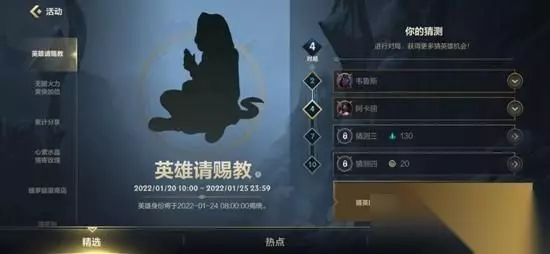 在英雄联盟手游中会有很多好玩的活动,最近在游戏中开启了一个“英雄请赐教”的活动,名玩家要根据剪影来猜测图中的英雄,接下来小编为大家带来了详细介绍,希望可以帮助到…