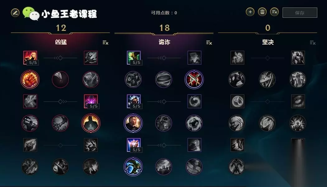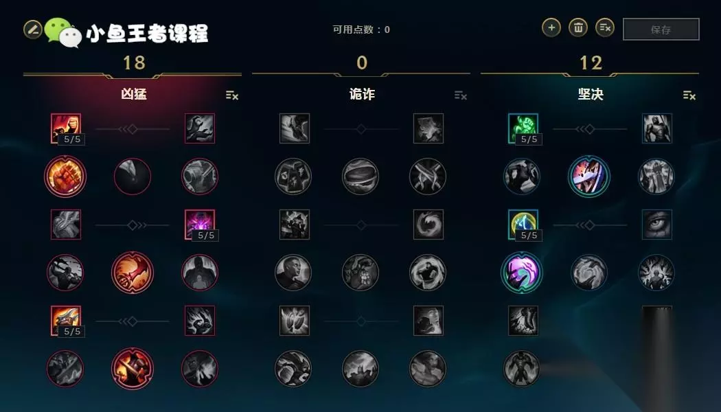 第二种12 18 0的加点方式。12点点出凶猛系的狂怒和战争专注,提升赵信的攻速以及持续伤害;18点点出风暴骑士的狂涌,提升赵信的追击能力,减少被风筝的时间可以更快的接近敌人。