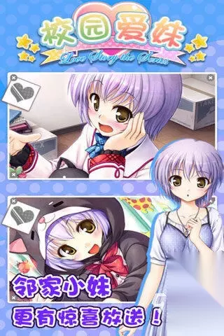《我的桃花运》游戏把所有的恋爱对象,刻画成了在行为逻辑上媲美真人的 Npc设定,全景更是运用了浪漫缤纷的意境,将一些恋爱背景以及事件情节细腻入微的设计了出来,过程中你将通过接触不同的动态事件,不同的场合中,与女主进行微妙的邂逅,游戏还将一些发人深省的人生选择和价值观,都映射加入到了不同的结局之中。 高速下载 普通下载 优先233乐园APP下载 4、《校园爱妹》