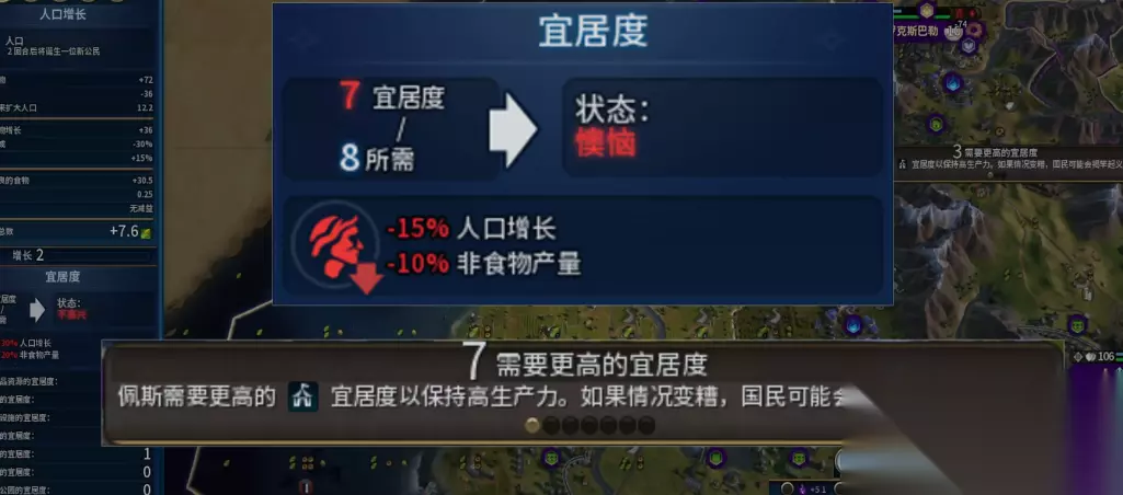 理解并规避导致宜居度下降的负面因素同样重要。人口过快增长是主要压力来源,每增加2人口会固定消耗1点宜居度。长期进行战争会积累厌战情绪,导致宜居度持续下跌。国家财政破产会按赤字比例削减宜居度,敌对文明的间谍活动也可能间接造成影响。控制城市人口增长节奏、谨慎发动战争并保持良好的经济状况是维持宜居度的基础。 玩家还需要注意一些特定的游戏机制。同一种类的奢侈品资源效果无法叠加,系统会自动将其分配给最需要的城市。在规划城市时,将娱乐区域及其高级建筑(如体育场)放置在多个城市的交界处,可以使增益效果覆盖更广,效率更高。中后期当城市区域齐全后,应积极启用如新政这类强力的政策卡来应对大规模城市的宜居度需求。