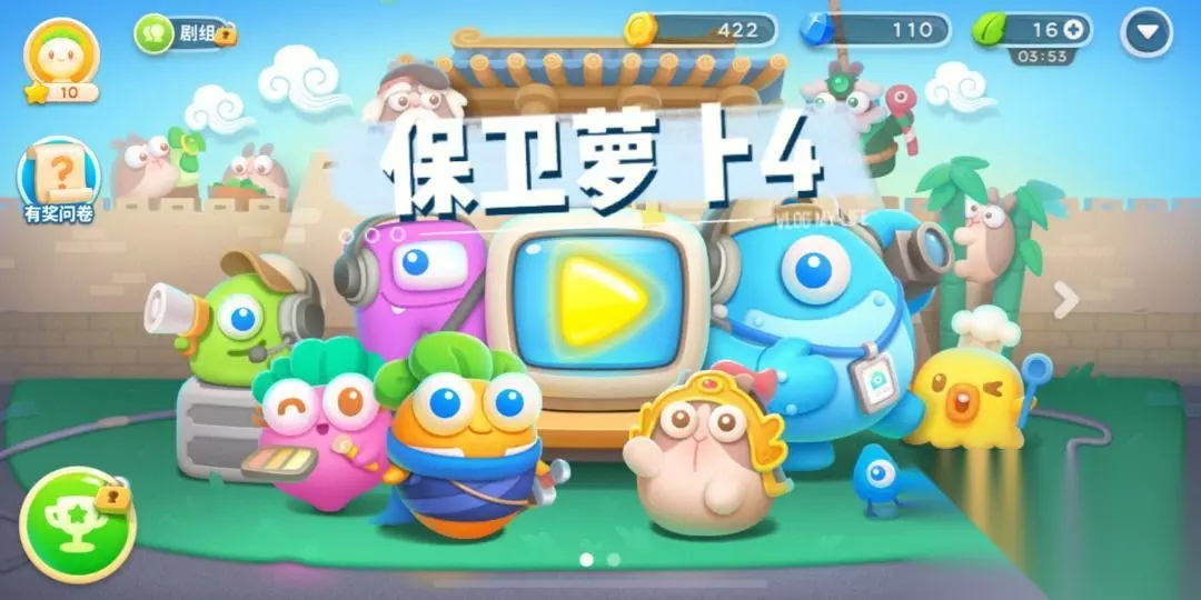 玩家作为消消部落中的顶尖人才,看到村长被神秘人劫持了,为了拯救可怜的村长,玩家需要不断地将游戏界面中有着各种图案的图案给消灭掉,从而获得传说中能拯救村长的金豆荚,当然,为了获得更多的金豆荚,玩家在游戏的过程中还要讲求效率和成绩,只有成绩优越的玩家才能获得更高分。 扫码下载该游戏 高速下载 普通下载 优先233乐园APP下载 4、《保卫萝卜4》