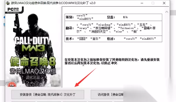 使命召唤现代战争3由于是比较老的游戏,所以没有官中,不过有玩家为大家制作了汉化补丁,而且提供了一键安装程序,所以我们只需要下载汉化补丁就能设置中文了。