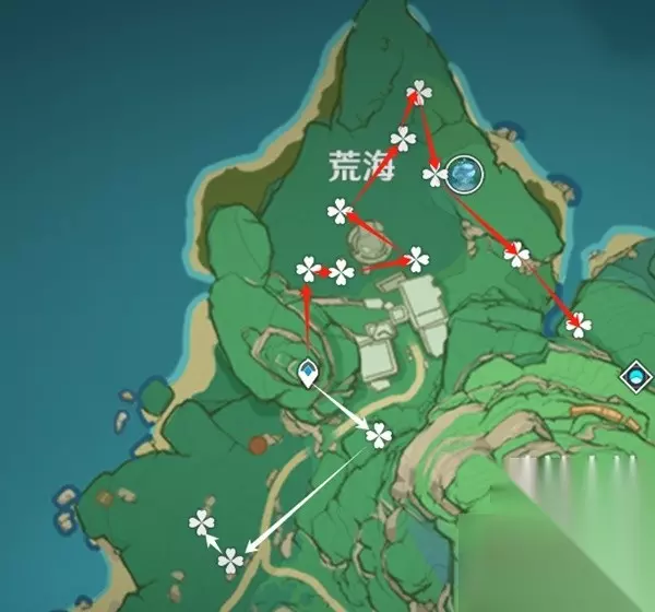《原神》绯樱绣球分布图一览: 【绯樱绣球】 1,荒海线,点位比较集中,也很好找,建议跑一趟