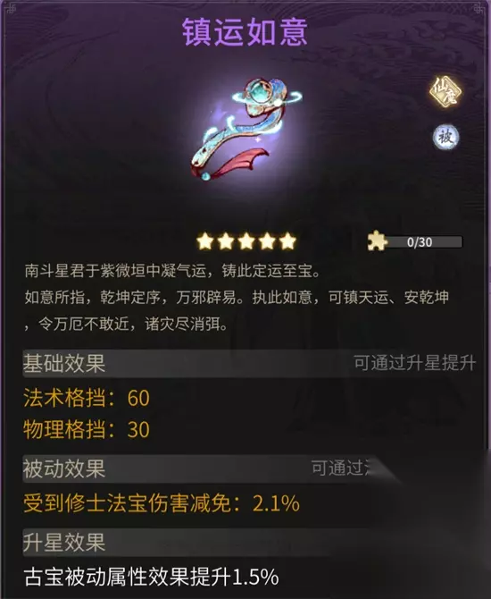 南斗星君为当代北极星宫二十八宿执掌人。他初入星宫之时违背天道推演世间大势,而后遭天谴,三千青丝尽成雪,幸得九星元祖将其救走。后来沉姜被贬,毕月乌叛逃,他临危受命执掌星宿,行事运筹帷幄,令众仙折服。 南斗星君凝紫薇垣气运铸成此宝,如意所指,可定乾坤、避万邪。携此宝可庇佑自身,减免受到的法宝伤害。 3.毕月乌