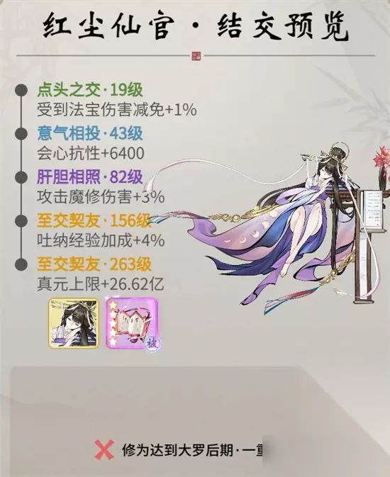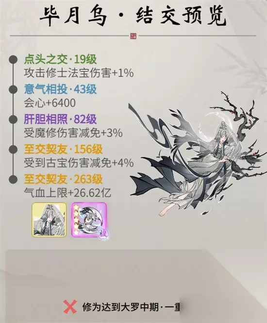 一念逍遥正式开放了大罗境界,有四位新大罗仙友加入了仙友名录中,他们分别是:武尊林昭、南斗星君、毕月乌、红尘仙官,玩家达成一定境界要求,就能结识这些大罗仙友,下面带来角色详细介绍,大家来看看吧。 一念逍遥大罗境界仙友及古宝信息 1.武尊林昭