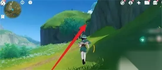 3、往右边山那边走就能看到一个洞口。 4、带好安柏,进去就会看到火把机关。