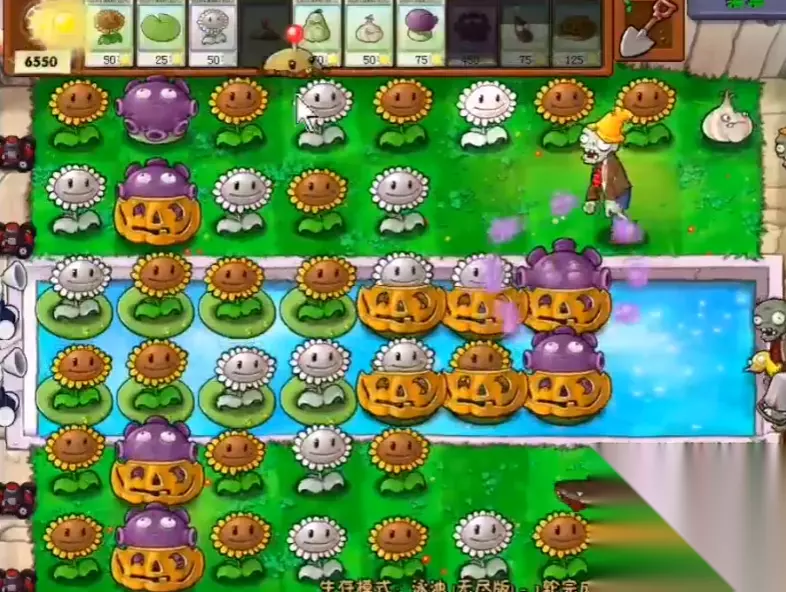 在摆下第一批防御植物后,游戏就进入了发展与防御并重的过渡阶段。阳光收入稳定后要立刻开始部署基础的攻击植物,比如在每行都种上豌豆射手,形成最初的火力网。水路的前排可以考虑放上缠绕水草或大喷菇来延缓僵尸推进速度。阳光储备慢慢增加,到了中期就要考虑优化生产结构,把普通的向日葵替换成效率更高的双子向日葵,同时开始规划主力输出的位置。水路的中前部是布置香蒲或忧郁菇的好地方,陆地则可以用西瓜投手来过渡,记得及时给这些关键的攻击植物套上南瓜头,它们是你阵地的支柱,容不得闪失。