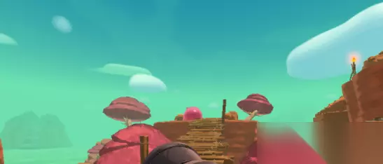 3、然后上左边斜坡,再上木桥,走到头就能看到二号大粉了。