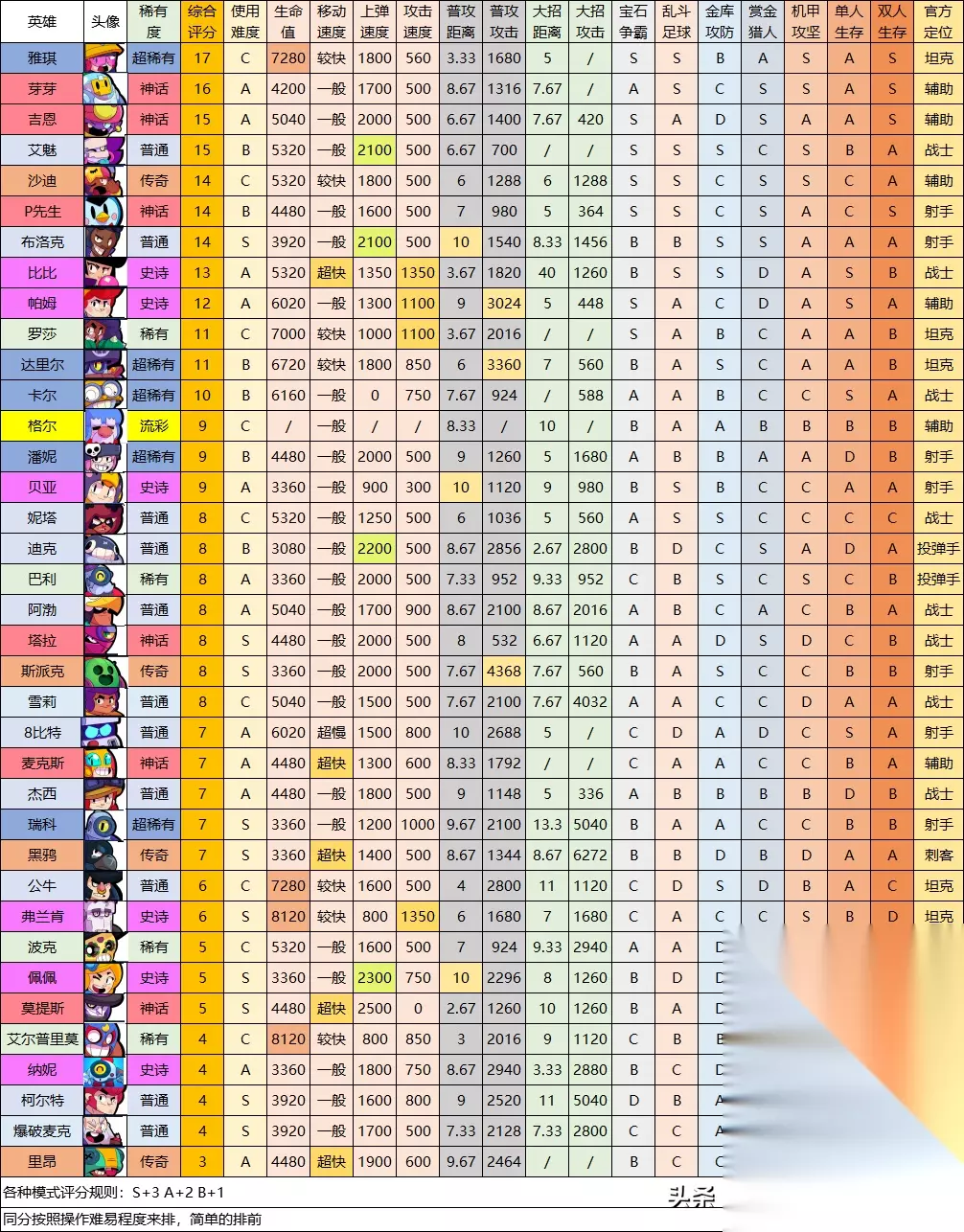 本次对全英雄属性和强度排名进行了更新(以英雄10级满级为参照物),调整了部分英雄的地图评级,加入了每个英雄的生命值,移动速度,上弹速度,攻击速度4个属性,让大家全方位了解英雄的属性,在对战的过程中能有更高阶的把握