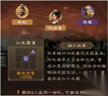 羁绊组合:激活隐藏属性加成 上阵有羁绊关系的武将,能触发额外属性提升!配队时优先凑羁绊,低战力也能越级挑战!