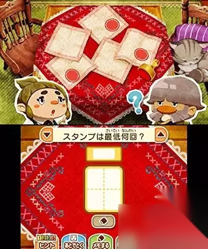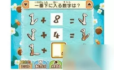 谜题:鼬鼠加法 还有些谜题看似数学问题但其实是脑筋急转弯,我在一个叫做“鼬鼠加法”的谜题上卡关,谜面就是上图,求框内的数字。由于几个鼬鼠的花纹、朝向与尾巴都不一样,绞尽脑汁思考这些数字与花纹的关系是否是代表变化的量时,脑筋猛然一转弯意识到这其实是代表XX的指向,有种白努力的感觉。 不过总体来说还是比较满意的,从量上来说也非常有诚意。并且本作依然会每天配信新谜题,就算是攒久了,偶尔拿出来玩玩也非常有意思。 角色演出与游戏剧情