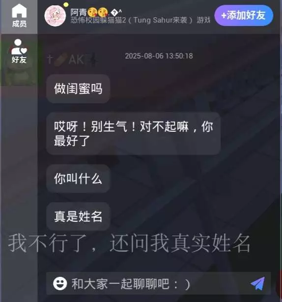 上来就加我好友,还问我处不处闺蜜,还问我叫什么名字,还让说真实姓名,我不行了