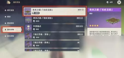 3.选择洞天珍物下的“玄此玉田”,点击右下角的“兑换”。