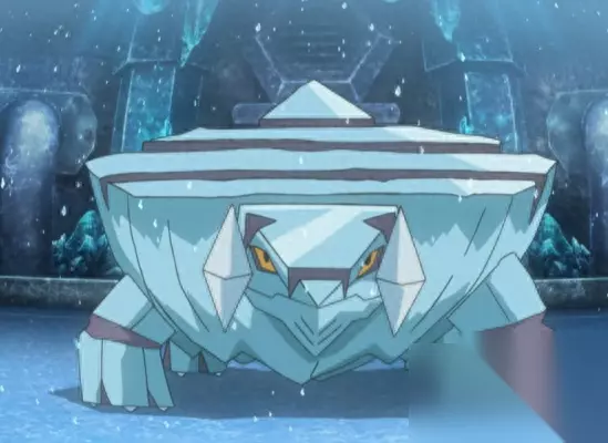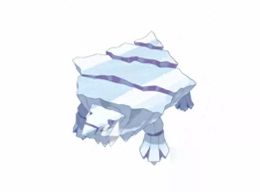 冰山宝可梦——冰岩怪(属性:冰) 因为外观上看起来就像是一块可以走动的巨大冰山,所以冰岩怪被分类为冰山宝可梦(如果不计大小的话其实冰宝的样子更加符合冰山的设定),属性是纯冰系;冰岩怪的外貌和形体酷似乌龟,并且全身为冰山所成,有着一对琥珀色的双瞳,它的背部非常光滑,没有凸起的棱角,不过即便如此也不是光滑的,它的背部有着几道裂痕,其身体的头部中间有明显的脖子,其身体分为三节,最后一节为尾部。