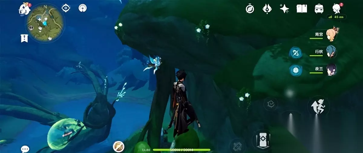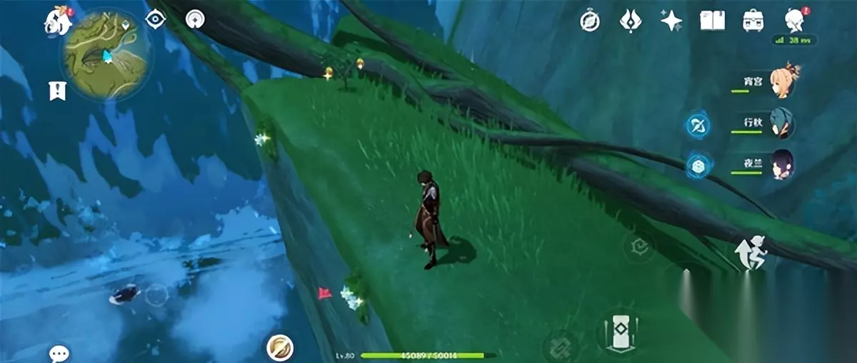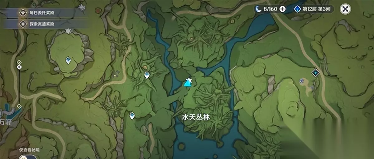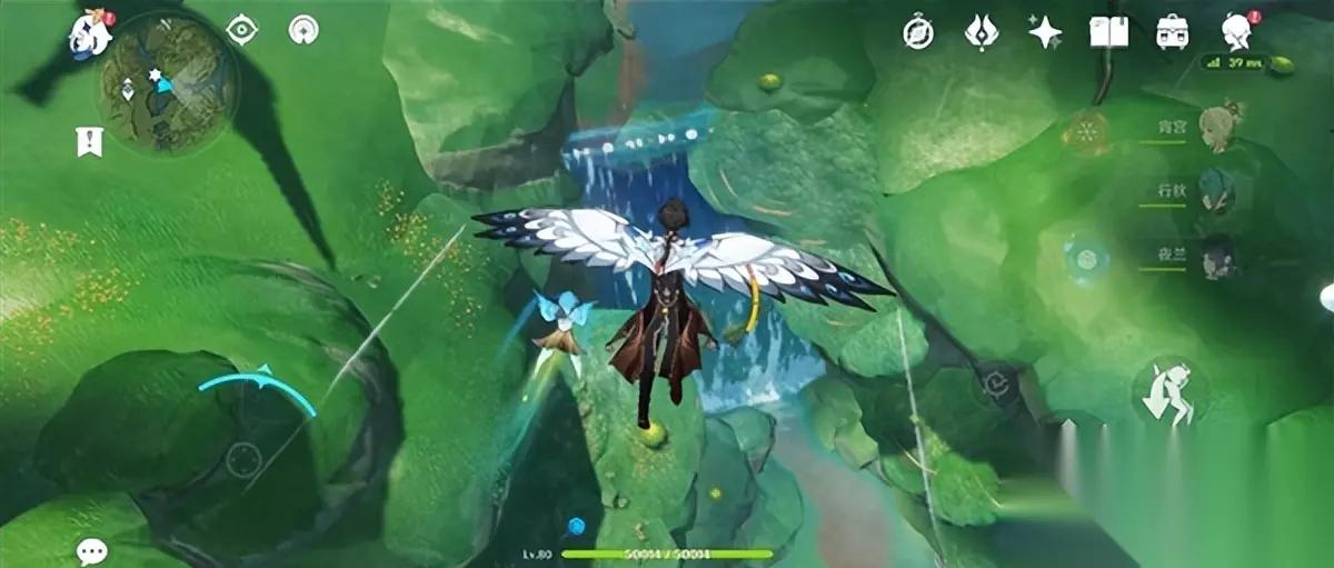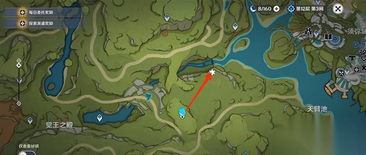 4、须弥城西侧有瀑布7处。 (来到觉王殿右侧的七重天雕像,往东北走就到了这里的瀑布。上面有两个,跳下的有三个,沿着瀑布的树枝有两个)
