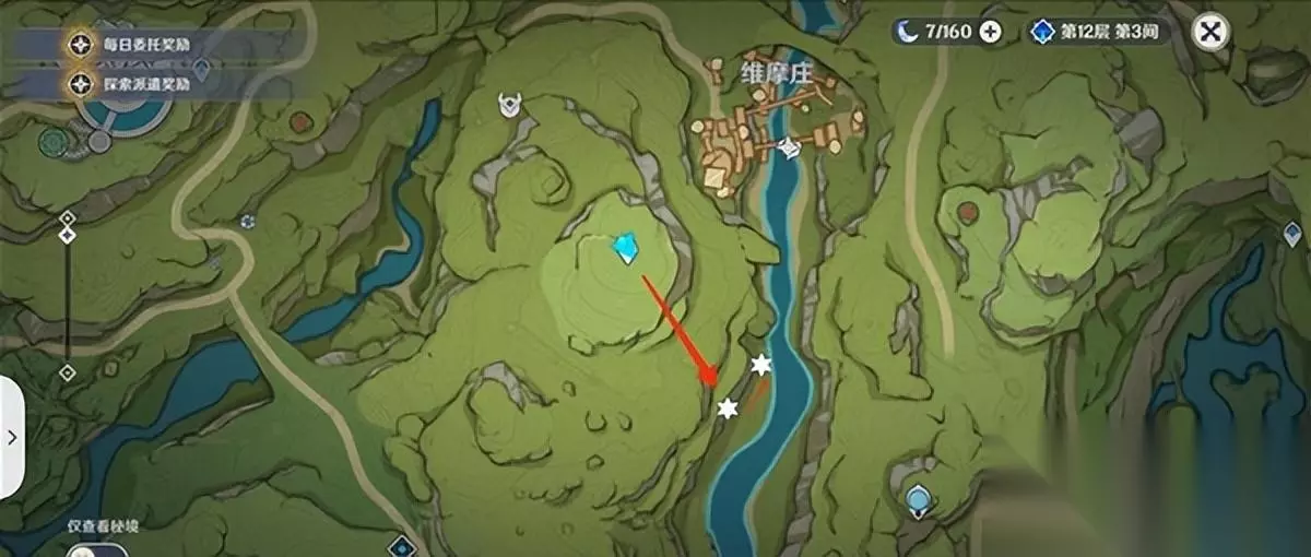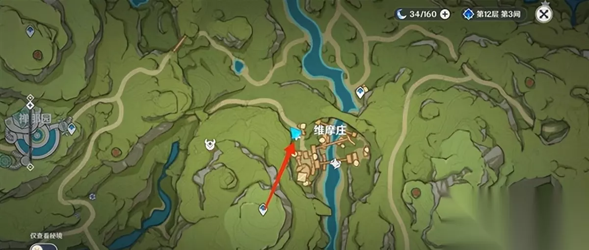2.维莫村南侧-X8。 (来到未魔庄西南侧的传送点,向东南走到图中所示的位置,沿着悬崖爬上去,一共有八朵花)