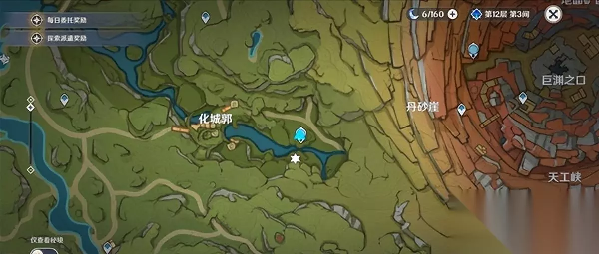 1、花城国七重天雕像南侧——X6。 (来到花城国的齐天大神雕像,飞到地图南侧,来到这个瀑布。一共有六个地方劫波莲)