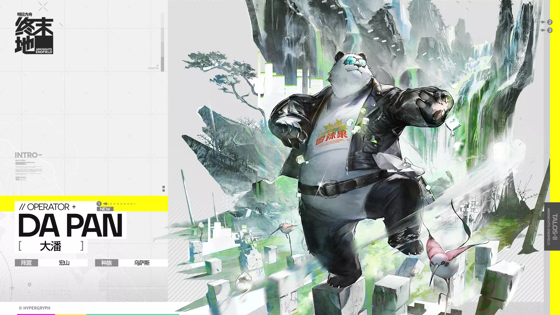 大潘来自宏山科学院,由后者派遣(经由干员陈千语介绍)至终末地工业,担任特派联络员。