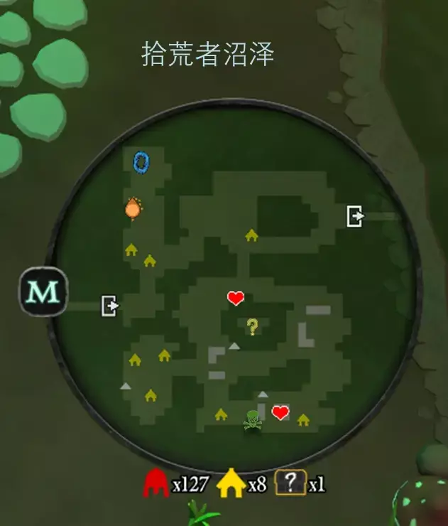 拾荒者沼泽为第一个关卡,如前言所说,秘密位于中间小岛上,白色三角为训练木桩,破坏三个木桩后,小岛上会出现连接四周河道的独木桥,非常简单