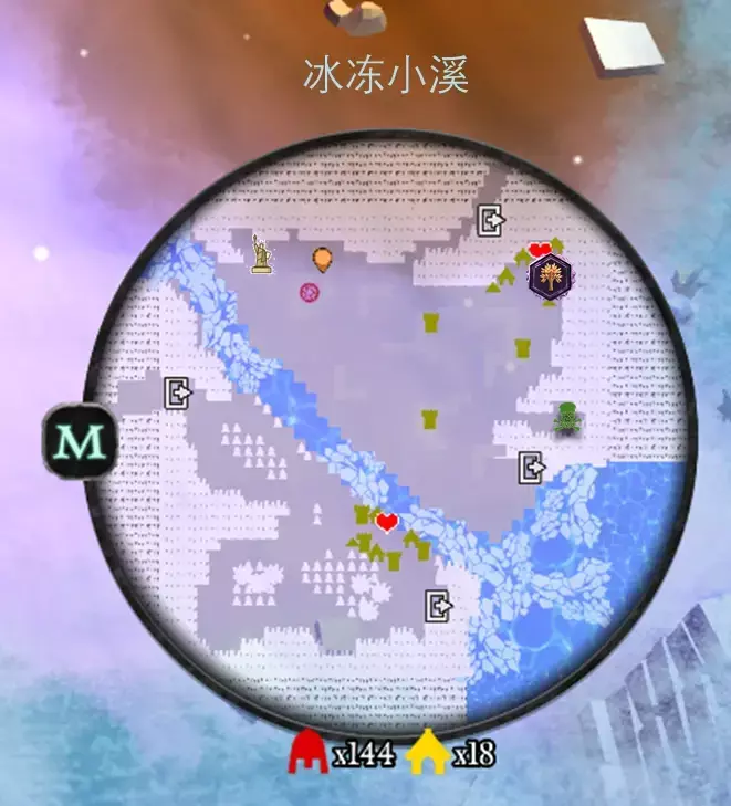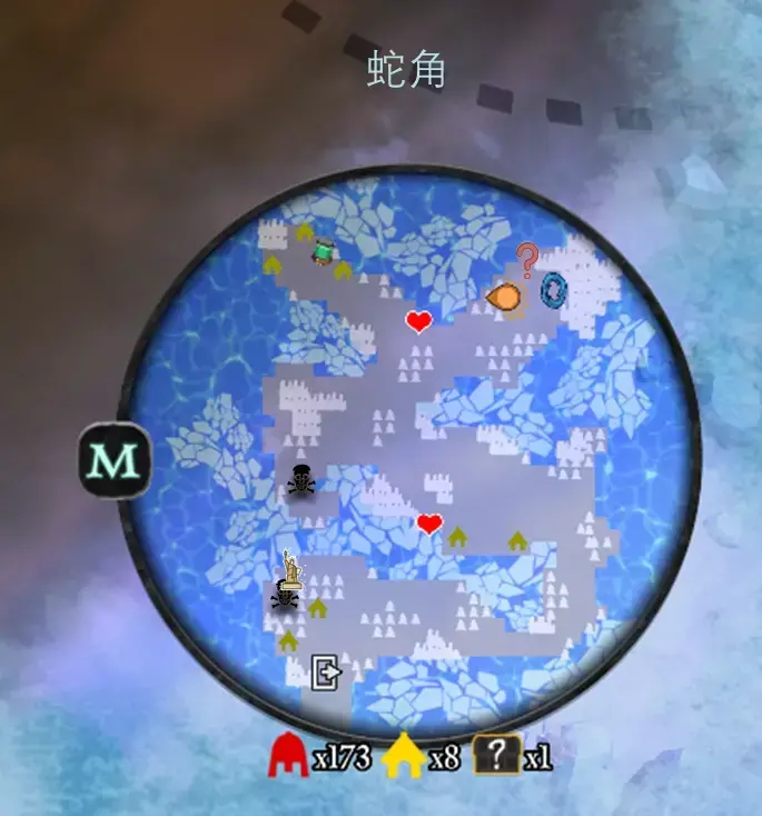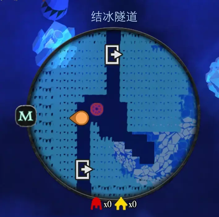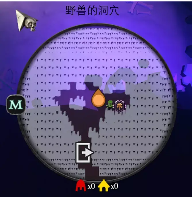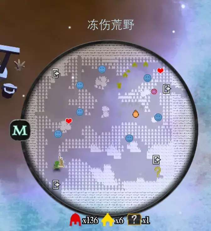 左上方可连通至野兽的洞穴,需要破坏七个小雪人,小雪人的位置在上图中以笑脸标注
