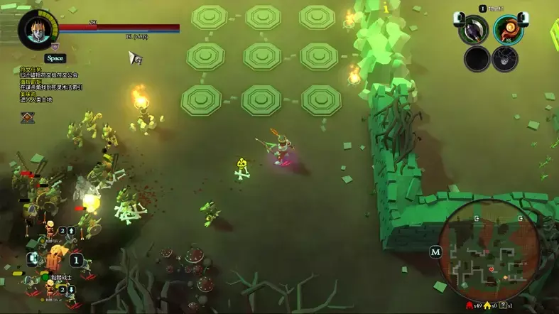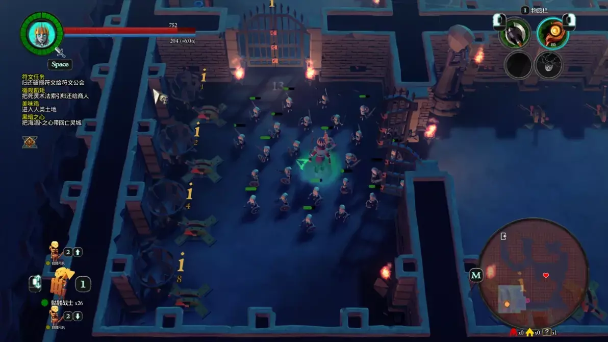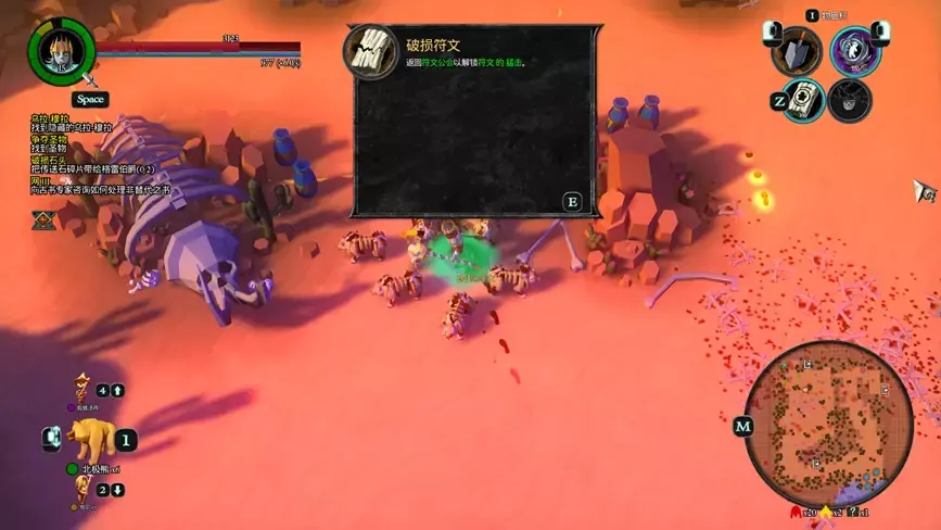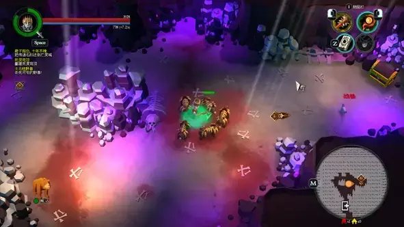 1.黑暗之地区域中存在一些训练假人、图腾,需要在一个地图中击败若干数量,以产生新的道路,在小地图中以白色三角出现