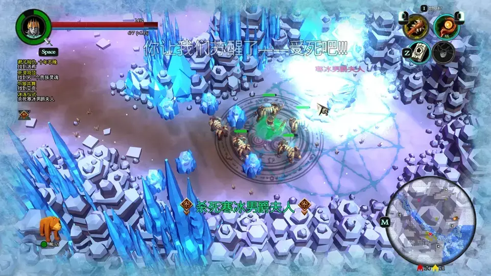 右方融化冰块后可以召唤隐藏BOSS寒冰男爵夫人