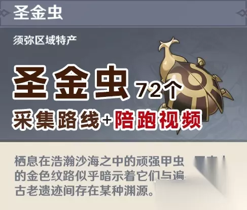 圣金虫适用角色:五星角色赛诺 路线一至三 阿如村上方和右侧,活力之家9个