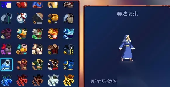 重生细胞重返恶魔城DLC图纸大全 新增装饰: 1、赛法装束:贝尔南堤斯家族的魔法使所穿戴的传统服饰。