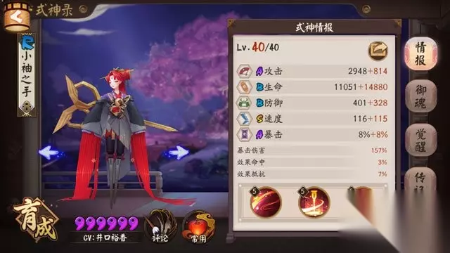 属性面板 攻击:A,2948 生命:B,11051 防御:B,401 速度:S,116 暴击:A,8 面板中规中矩,也符合R卡的调性。基础速度116,非常快。从面板上基本上以及可以看得出来,小秀更倾向于辅助。不过她是一个有输出能力的辅助! 技能解析