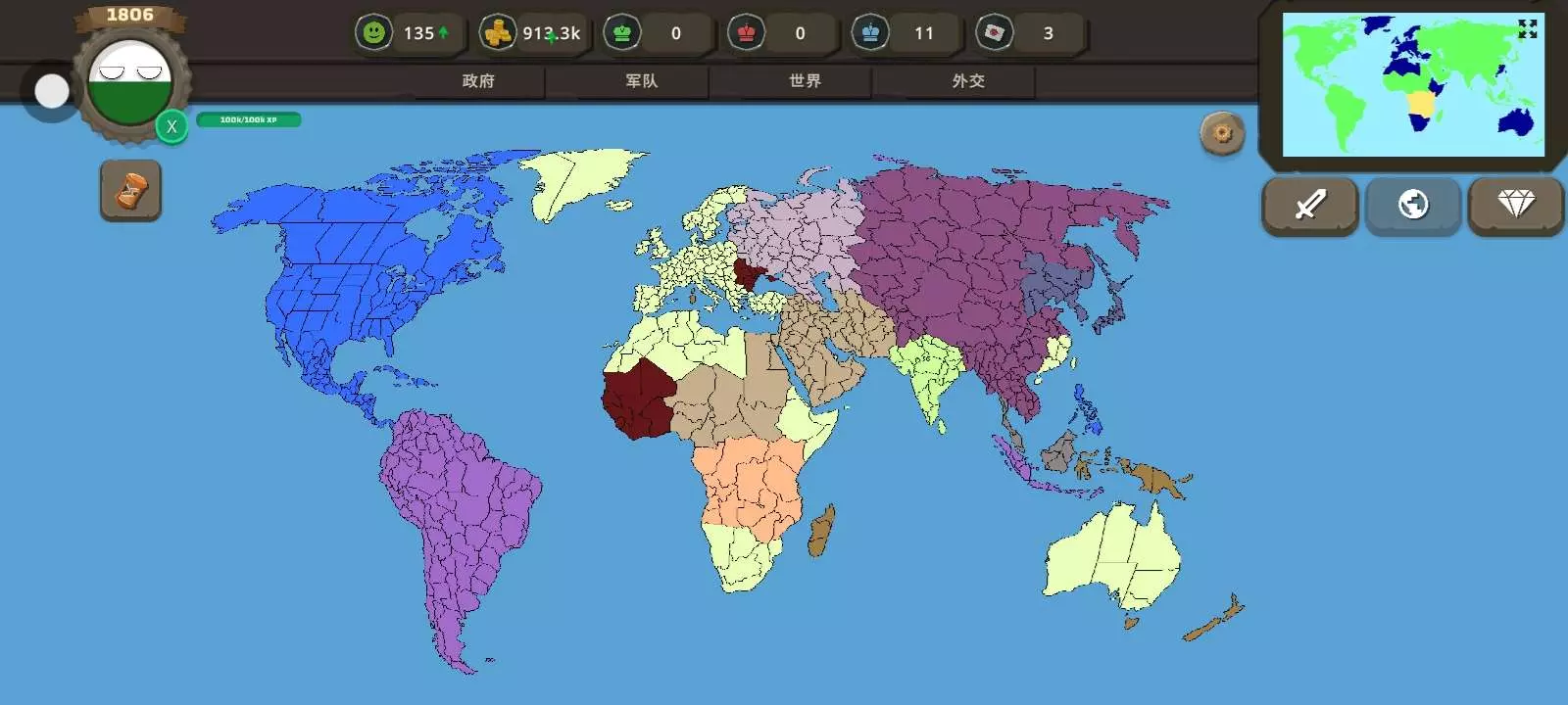 冲突模式,当你们看到我用了什么国家打赢了你们,就知道我前期有多痛苦,一己之力打三条战线。还有谁冲突模式?敢玩萨克森这个国家,开局2块土地,周围全都是大国,普鲁士和奥地利不能打由英国和法国做盟友,到了后期,会有一群大国组成联军打你,老老实实发展,根本没用,必须得把三级殖民者火枪弄出来,没弄出来之前差点被打灭国,弄出来后直接反推战线
