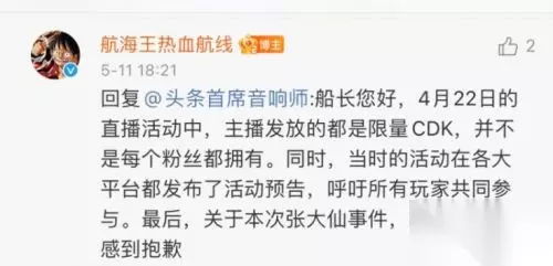 航海王热血航线张大仙事件是怎么回事?,最近张大仙在直播间内给粉丝们分享了航海王热血航线的礼包兑换码,但是因为是限量版的CDK,导致很多粉丝们没有领取到,,其实这是跟一次活动相关的,导致这样结果,也是策划们不想看到的吧,下面就来和233乐园小编具体了解下情况吧。