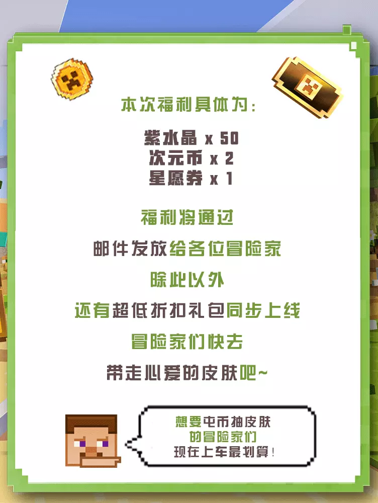 幸运币、星愿券等福利将通过游戏内邮件发放,记得及时查收!
